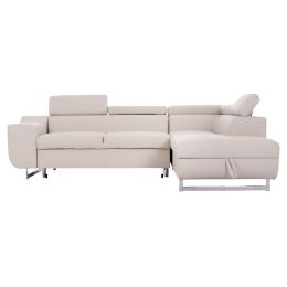 ΓΩΝΙΑΚΟΣ ΚΑΝΑΠΕΣ-ΚΡΕΒΑΤΙ ΜΕ ΑΠΟΘ.ΧΩΡΟ ALDO HM3276.01R ΜΠΕΖ ΥΦΑΣΜΑ 256x91-159x87Υεκ.
