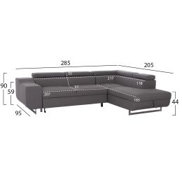 ΓΩΝΙΑΚΟΣ ΚΑΝΑΠΕΣ-ΚΡΕΒΑΤΙ ΜΕ ΑΠΟΘ.ΧΩΡΟ ENCORE HM3301.01R ΓΚΡΙ ΥΦΑΣΜΑ 285x205x90Υεκ.