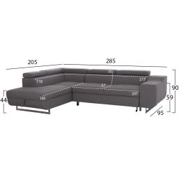 ΓΩΝΙΑΚΟΣ ΚΑΝΑΠΕΣ-ΚΡΕΒΑΤΙ ΜΕ ΑΠΟΘ.ΧΩΡΟ ENCORE HM3301.01L ΓΚΡΙ ΥΦΑΣΜΑ 285x205x90Υεκ.