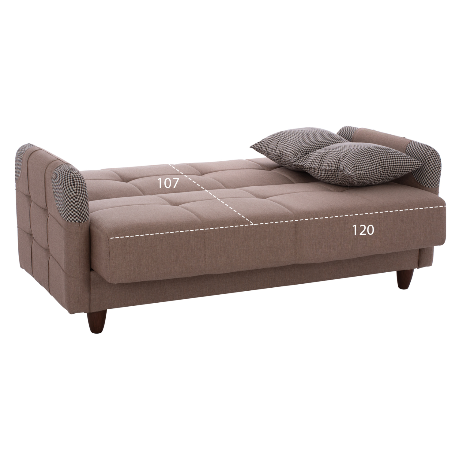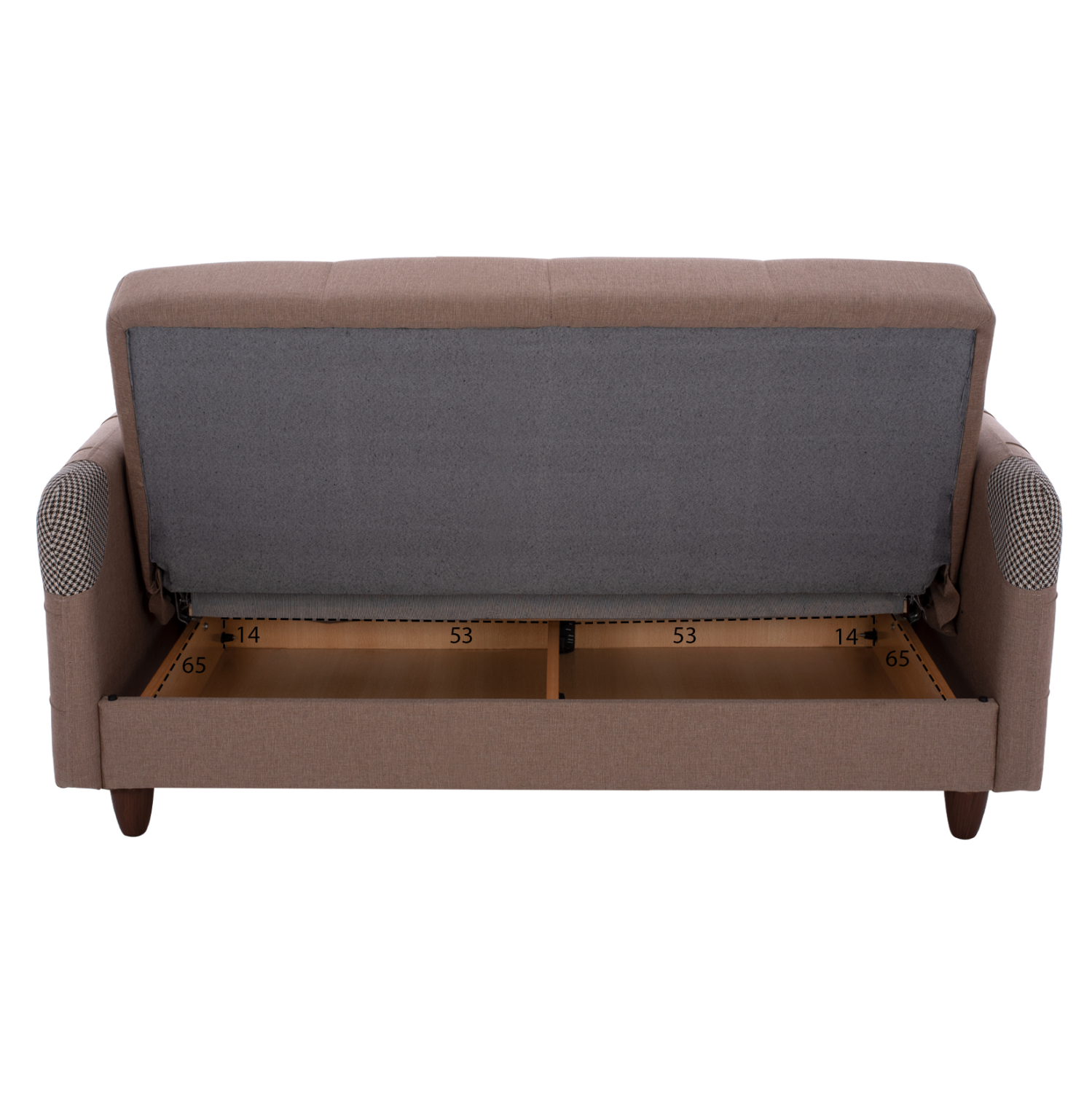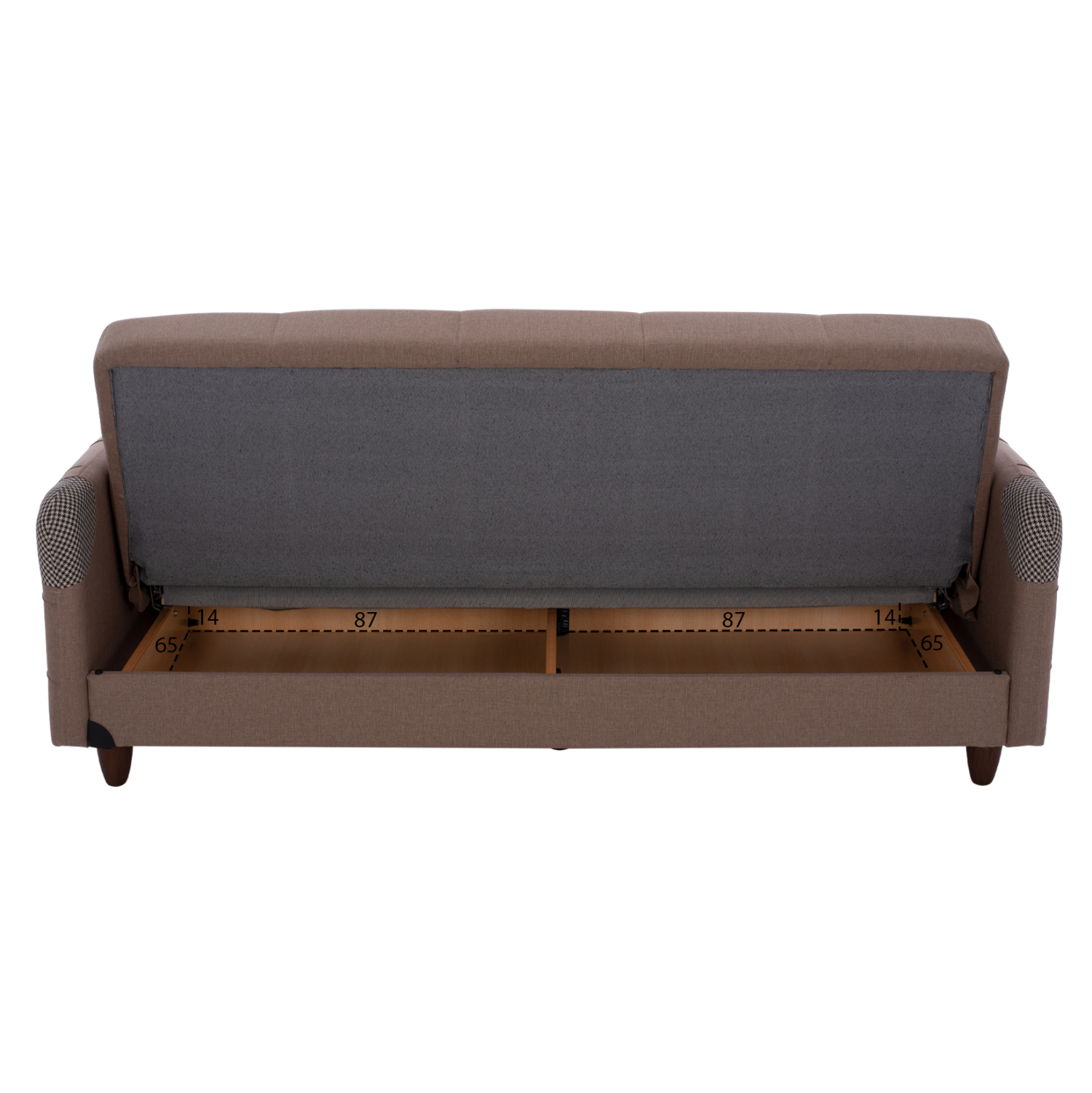 Το κύριο χαρακτηριστικό τους, όμως, είναι ότι πέφτει η πλάτη και μετατρέπονται σε άνετα κρεβάτια που με τις πλούσιες διαστάσεις τους θα ικανοποιήσουν τους πάντες. Συνέπεια αυτού, βέβαια, είναι και η ύπαρξη δύο αποθηκευτικών χώρων κάτω από το κάθισμα των καναπέδων, οι οποίοι πάντα είναι χρήσιμοι, ειδικά σε φοιτητικά σπίτια. Τέλος, τα πόδια τους σε καφέ χρώμα, είναι ψηλά επιτρέποντας το εύκολο καθάρισμα χωρίς να χρειαστεί να μετακινηθούν ολόκληροι οι καναπέδες.