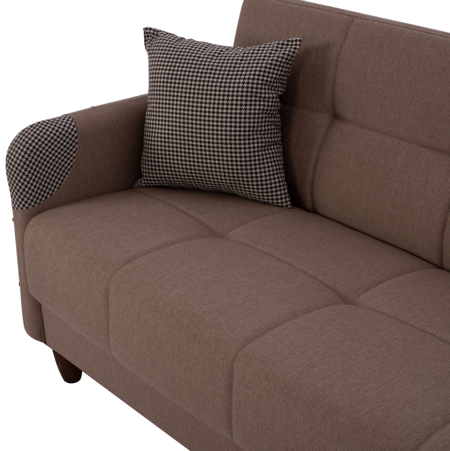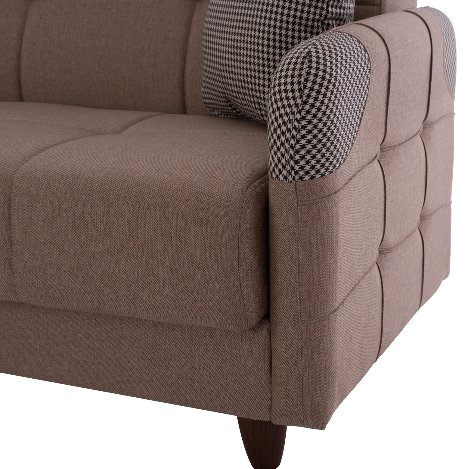 Η επένδυση των καναπέδων έχει γίνει με ύφασμα εξαιρετικής ποιότητας, ενώ τα γεμίσματα τόσο στο κάθισμα, όσο και στην πλάτη είναι από μέτριας σκληρότητας αφρώδες υλικό που προσφέρει άνεση και ποιότητα στον ύπνο, όταν μετατρέπεται σε κρεβάτι.