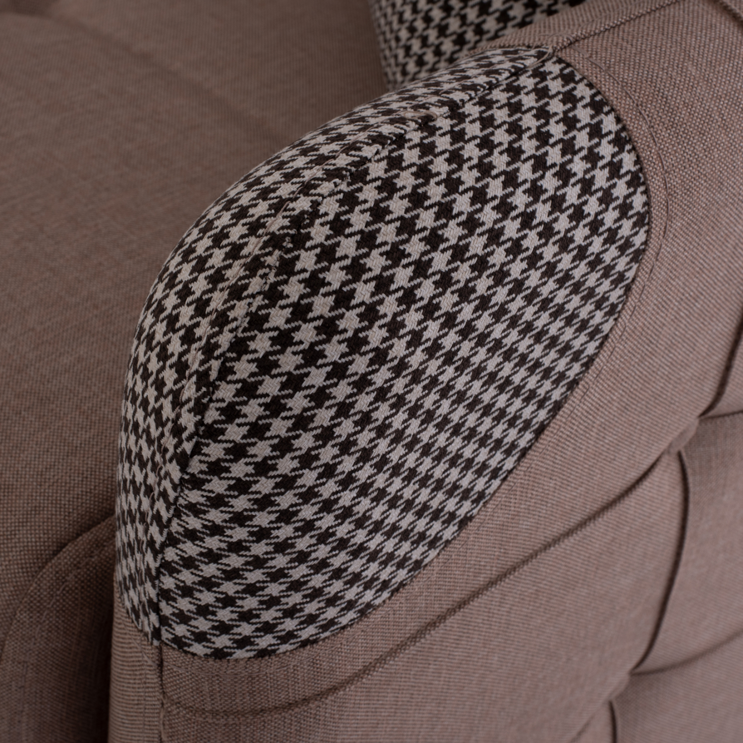 Η επένδυσή τους είναι με εξαιρετικής ποιότητας ΜΠΕΖ ύφασμα ενώ τα διακοσμητικά μαξιλαράκια, τους δίνουν μια διαφορετική αισθητική πινελιά με ύφασμα σε καρό σχεδιασμό που συνεχίζει και στις εμπρός γωνίες των μπράτσων. Η επένδυση έχει τεχνοτροπία καπιτονέ σε μεγάλα τετράγωνα τόσο στο άνετο κάθισμά τους και στην πλάτη, όσο και στα λεπτά μπράτσα.