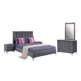 Σετ κρεβατοκάμαρας, από βελούδο σε γκρι απόχρωση με μεταλλικές λεπτομέρειες.