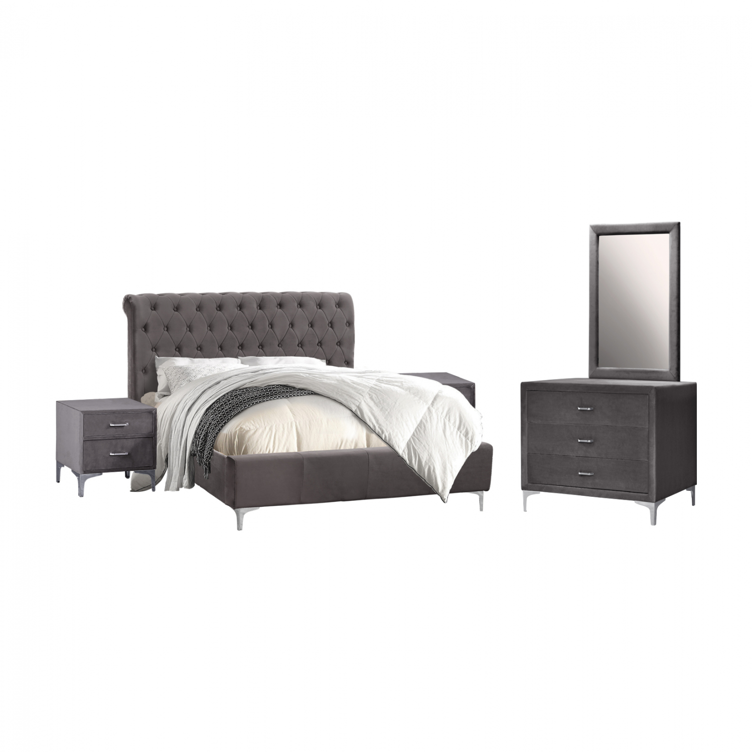 Σετ κρεβατοκάμαρας 4τμχ από βελούδο σε γκρι απόχρωση.