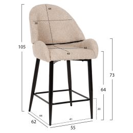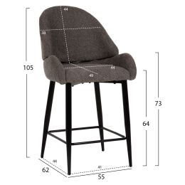 ΣΚΑΜΠΟ ΜΕΣΑΙΟΥ ΥΨΟΥΣ SARKY HM8586.01 ΥΦΑΣΜΑ ΜΠΟΥΚΛΕ ΓΚΡΙ-ΜΑΥΡΑ ΜΕΤΑΛ. ΠΟΔΙΑ 55x62x105Yεκ.