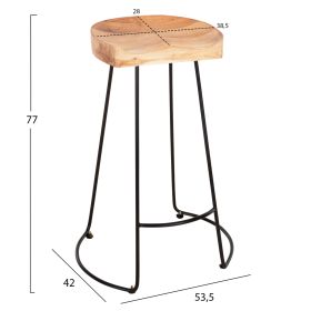 Σκαμπό Bar ELEANOR με μεταλλική βάση σε μαύρο χρώμα και κάθισμα από ξύλο Ακακίας σε μοντέρνο INDUSTRIAL σχεδιασμό.