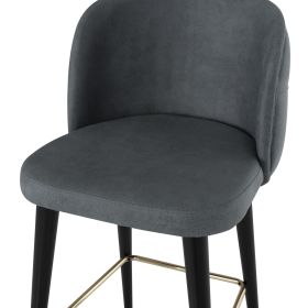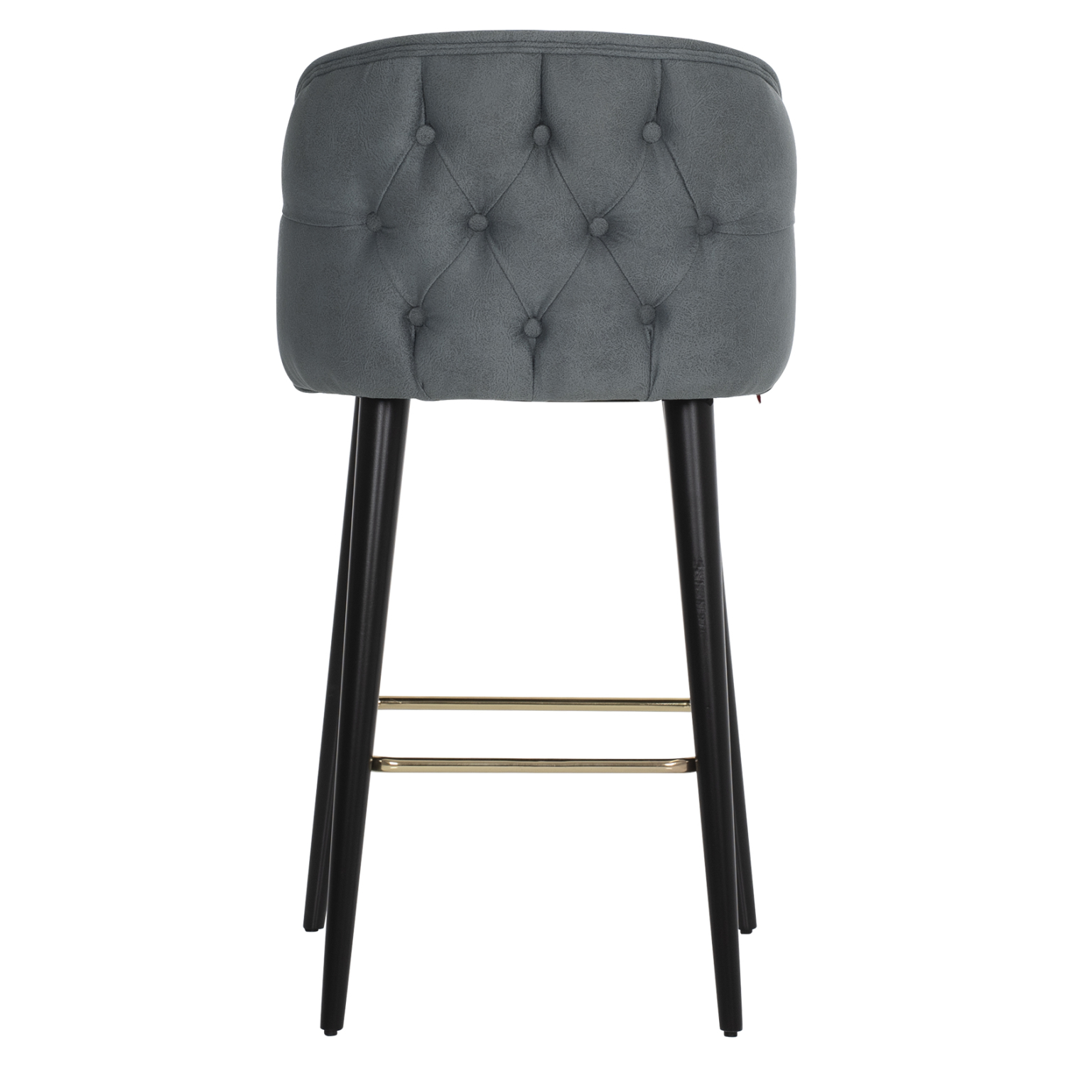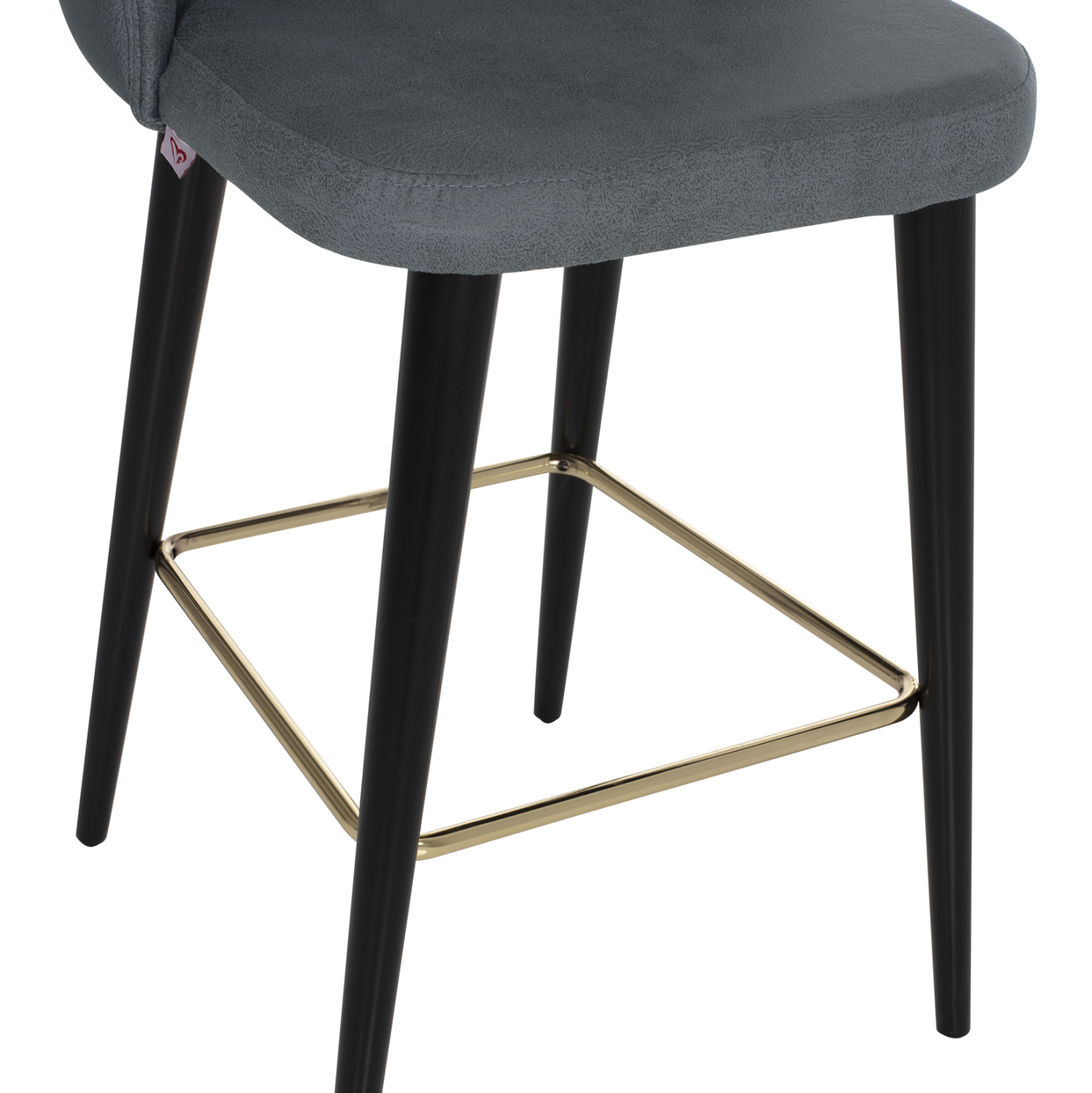 Επαγγελματικό σκαμπό bar «MARCELLO” σε ΓΚΡΙ χρώμα με μαύρα ξύλινα πόδια. Τα πόδια ενώνονται μεταξύ τους περίπου στη μέση τους με μια μεταλλική ορθογώνια ράγα σε χρυσή απόχρωση. Το «MARCELLO” είναι λιτό, ποιοτικό και κομψό στην όψη, και σίγουρα τραβάει τα βλέμματα με το ύφασμα τύπου nubuck με το οποίο είναι επενδυμένο. Είναι ψηλό με πλάτη, η οποία στο πίσω μέρος της έχει καπιτονέ τεχνοτροπία, πράγμα που επιτείνει τον ιδιαίτερο χαρακτήρα αυτού του σκαμπό.