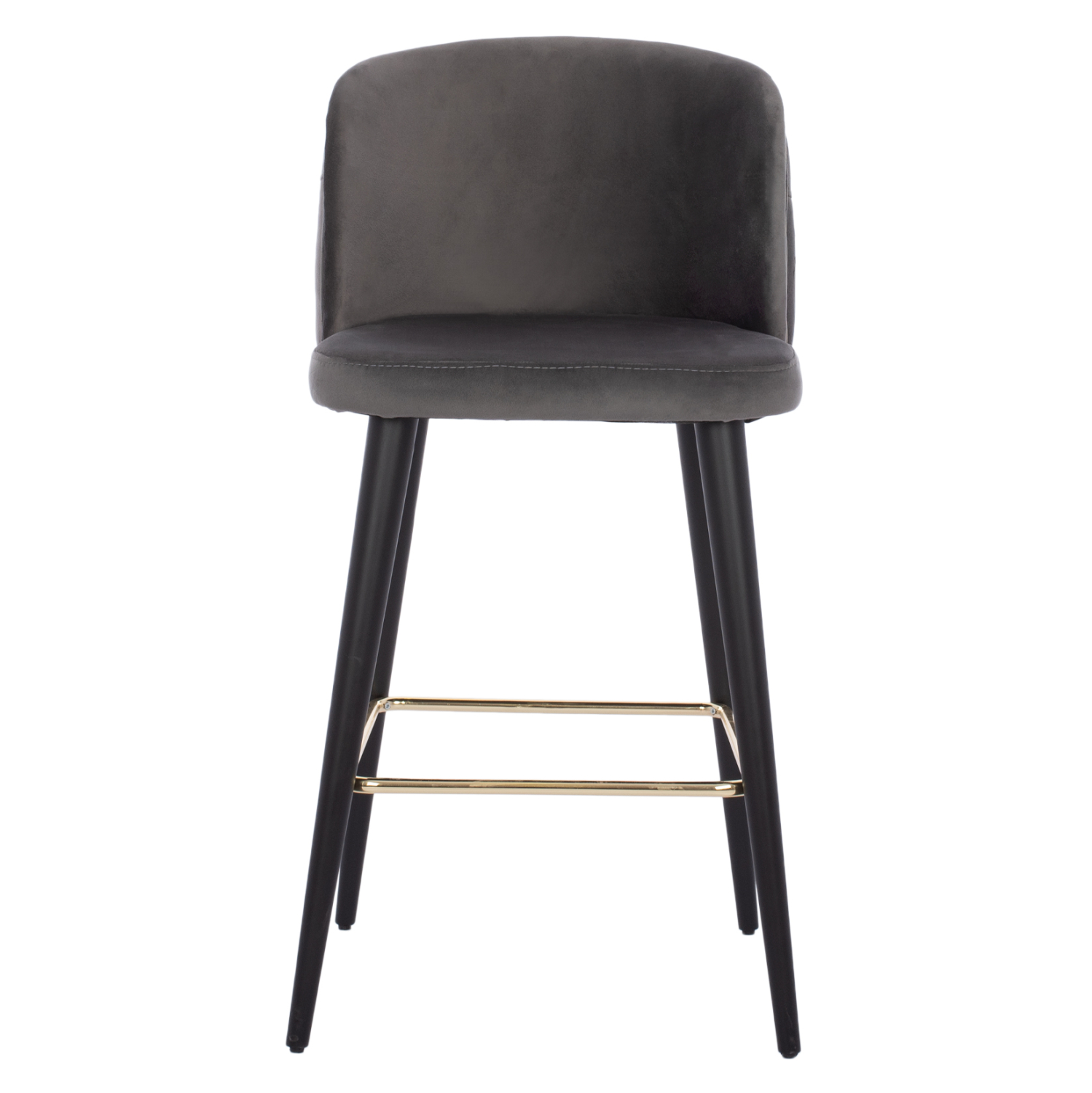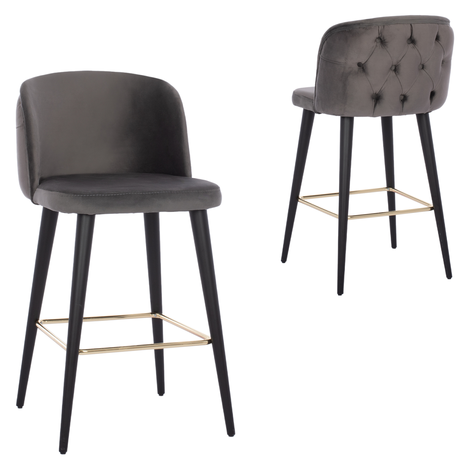 Σκαμπό bar «MARCELLO” σε γκρι χρώμα με μαύρα ξύλινα πόδια. Τα πόδια ενώνονται μεταξύ τους περίπου στη μέση τους με μια μεταλλική ορθογώνια ράγα σε χρυσή απόχρωση. Το «MARCELLO” είναι λιτό, ποιοτικό και κομψό στην όψη, και σίγουρα τραβάει τα βλέμματα. Είναι ψηλό με πλάτη, η οποία στο πίσω μέρος της έχει καπιτονέ τεχνοτροπία, πράγμα που επιτείνει τον ιδιαίτερο χαρακτήρα αυτού του σκαμπό.