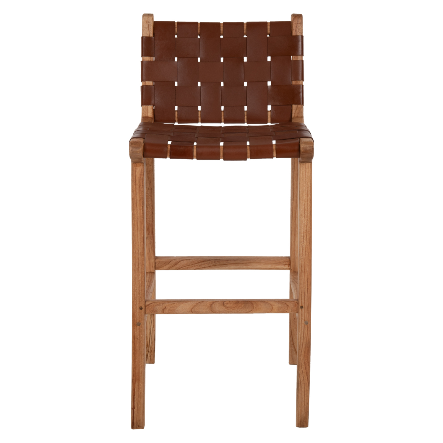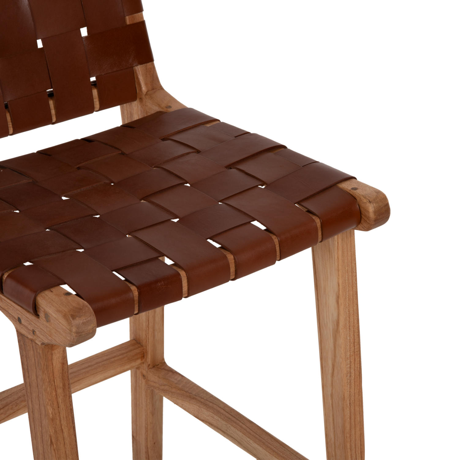 Το σκαμπό ΗΜ9380.01 χωρίς μπράτσα είναι απαράμιλλης ομορφιάς. Ο πανέμορφος σκελετός είναι από ποιοτικό ξύλο, ενώ τόσο η κοντή πλάτη όσο και το κάθισμα αποτελούνται από τετραγωνισμένα πλεγμένο φυσικό δέρμα. Οι σχεδιαστικές γραμμές είναι κομψές και με γνώμονα την άνεση του χρήστη, με χαρακτηριστικό παράδειγμα την ύπαρξη των συνδέσεων των ποδιών του σκαμπό, που χρησιμεύουν και ως υποπόδια. Το ξύλο έχει το φυσικό του χρώμα που μπορεί άνετα να συνδυαστεί με διάφορα διακοσμητικά μοτίβα ενώ το PU δέρμα είναι ΚΑΦΕ. Το σκαμπό θα αποτελέσει το κέντρο ενδιαφέροντος οπουδήποτε και αν τοποθετηθεί.