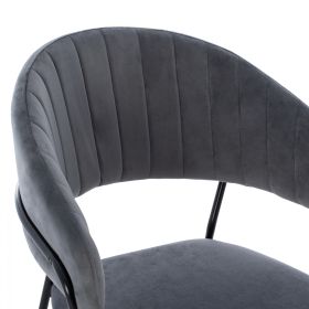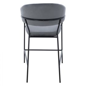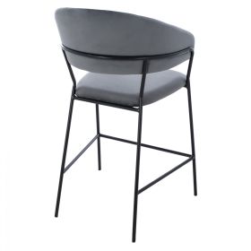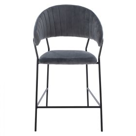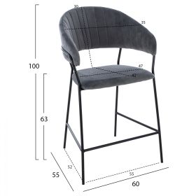 Σκαμπό μεσαίου ύψους Theodore, από βελούδινο ύφασμα σε γκρι με μαύρο σκελετό 60x55x100 εκ.