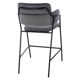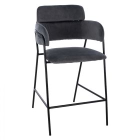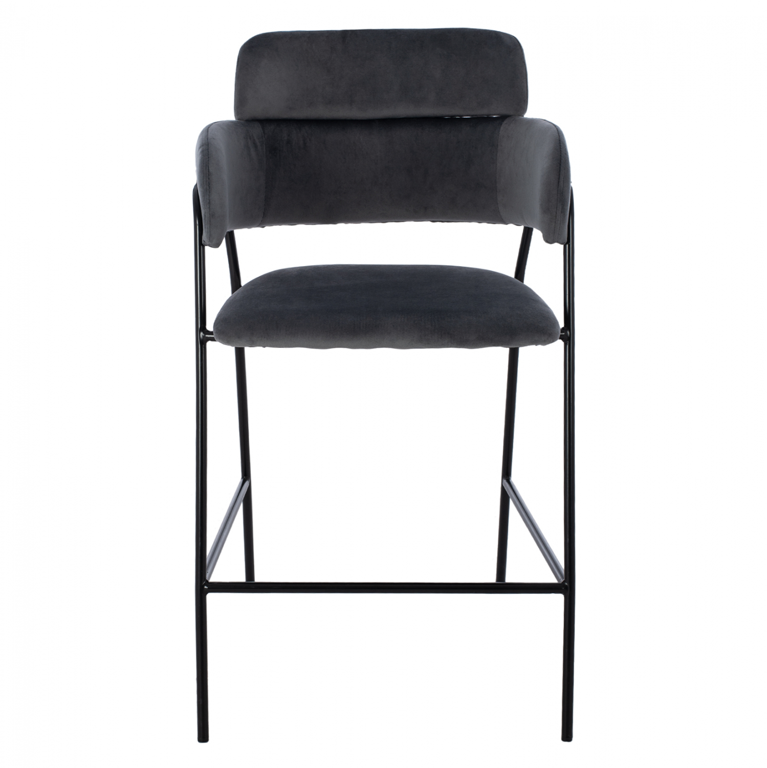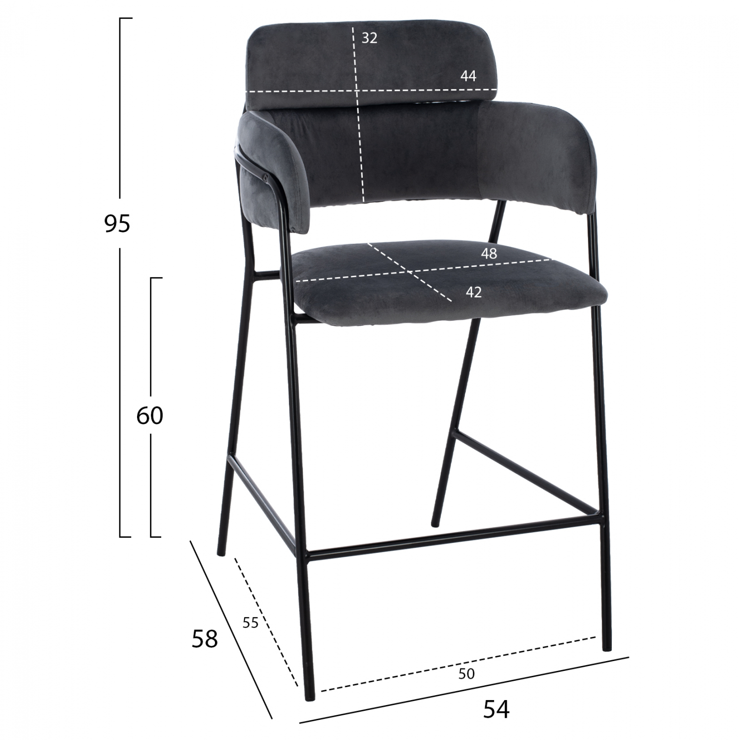Σκαμπό μεσαίου ύψους Kelso, από βελούδινο ύφασμα σε γκρι με μαύρο σκελετό 54x58x95 εκ.