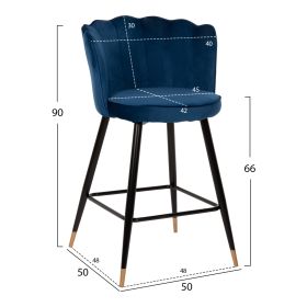 Επαγγελματικό σκαμπό bar «VESNA» σε ΜΠΛΕ χρώμα με μαύρο μεταλλικό σκελετό. Τα μεταλλικά πόδια ενώνονται μεταξύ τους περίπου στη μέση τους με μια μαύρη μεταλλική ράγα. Το «VESNA» είναι λιτό, ποιοτικό και κομψό στην όψη, και σίγουρα τραβάει τα βλέμματα με το βελούδινο ύφασμα με το οποίο είναι επενδυμένο. Είναι μεσαίου ύψους με πλάτη, η οποία έχει την όψη ανοιχτού όστρακου δίνοντας μια ιδιαίτερη αισθητική στον χώρο.