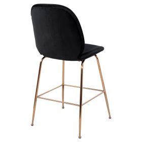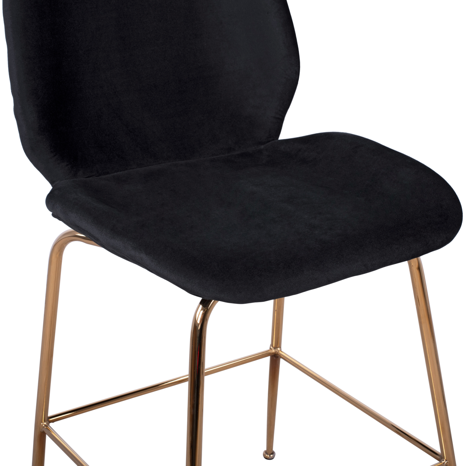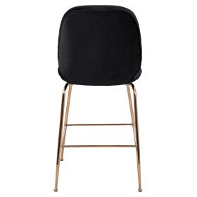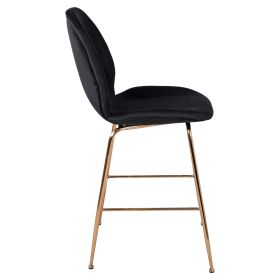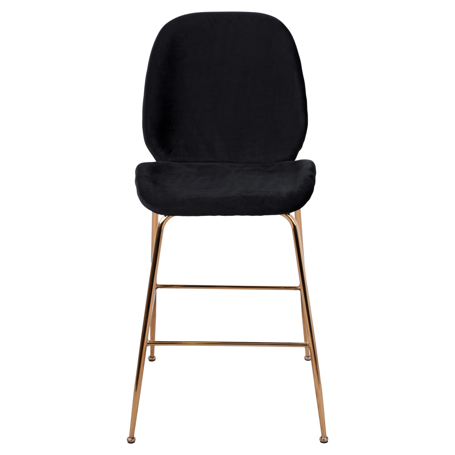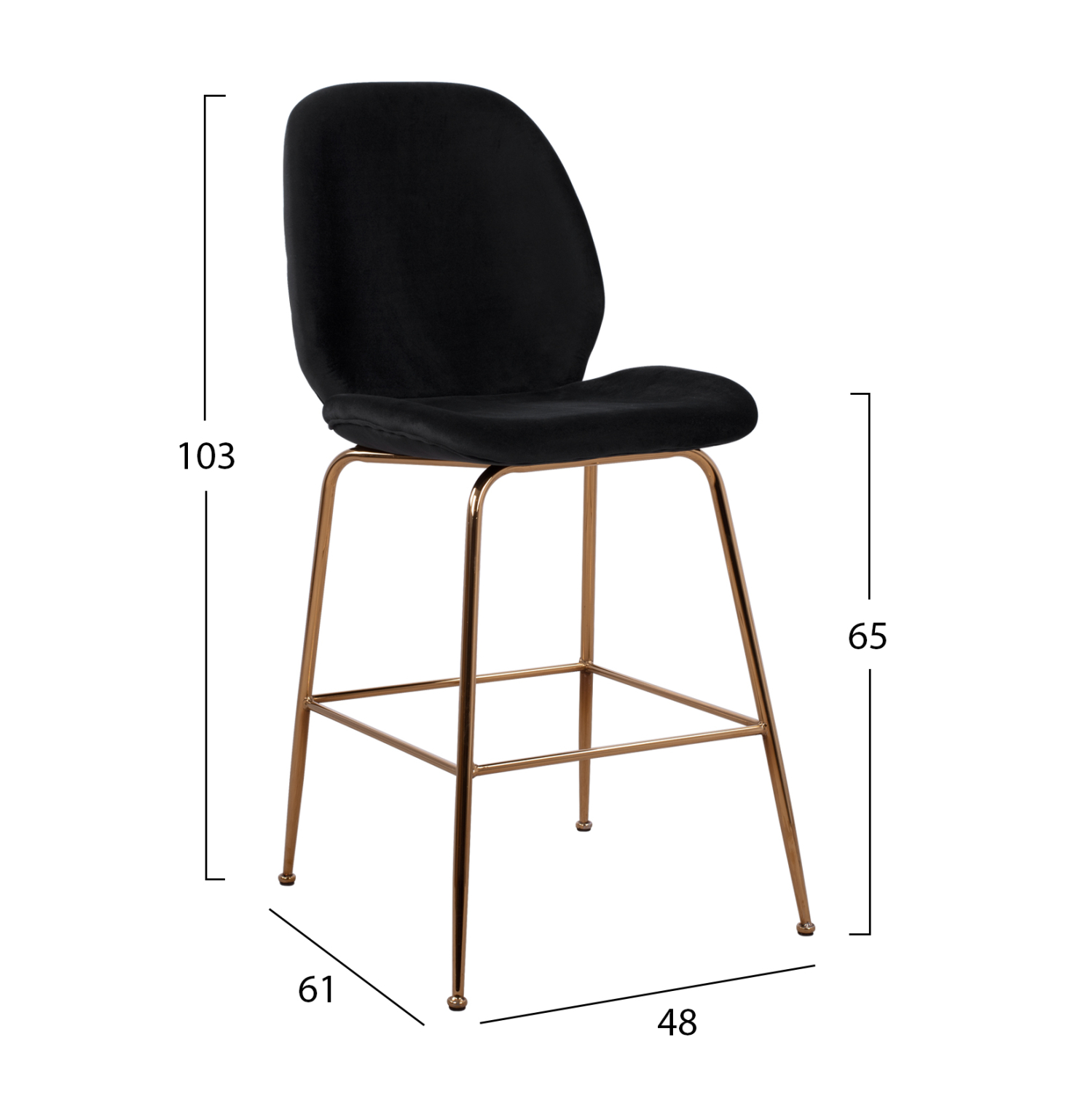 Σκαμπό μεσαίου ύψους NORA κατασκευασμένο από μέταλλο σε χρυσή απόχρωση και βελούδο σε μαύρο χρώμα,