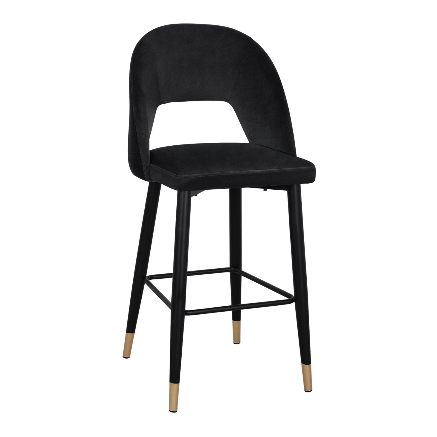 Το σκαμπό HARPER είναι επενδυμένο με ύφασμα βελούδο σε μαύρη απόχρωση με μεταλλικό σκελετό σε μαύρη ματ απόχρωση και χρυσές λεπτομερείς.