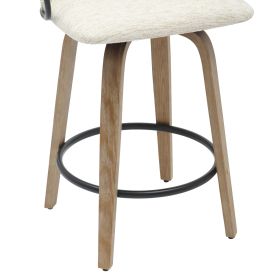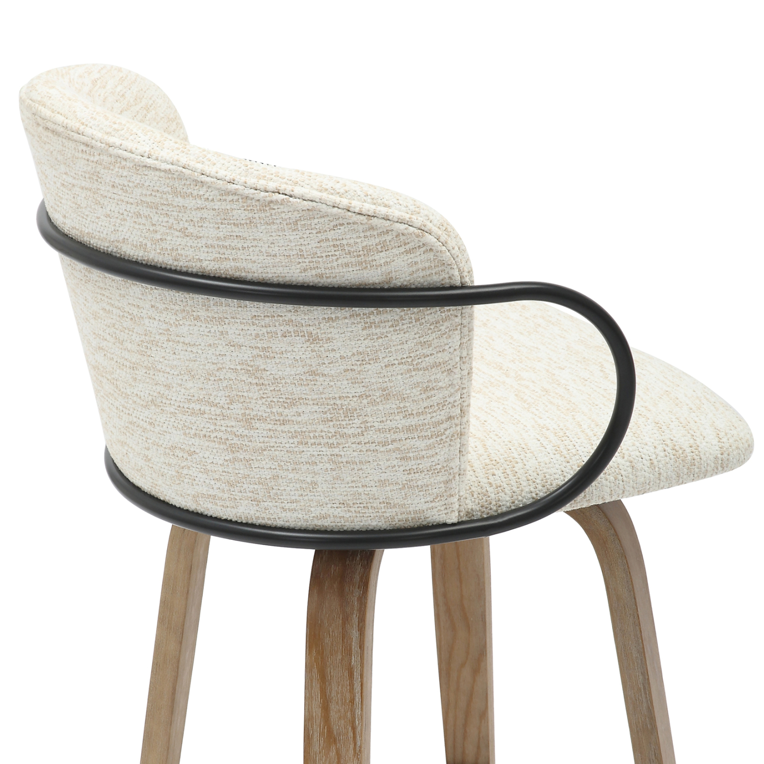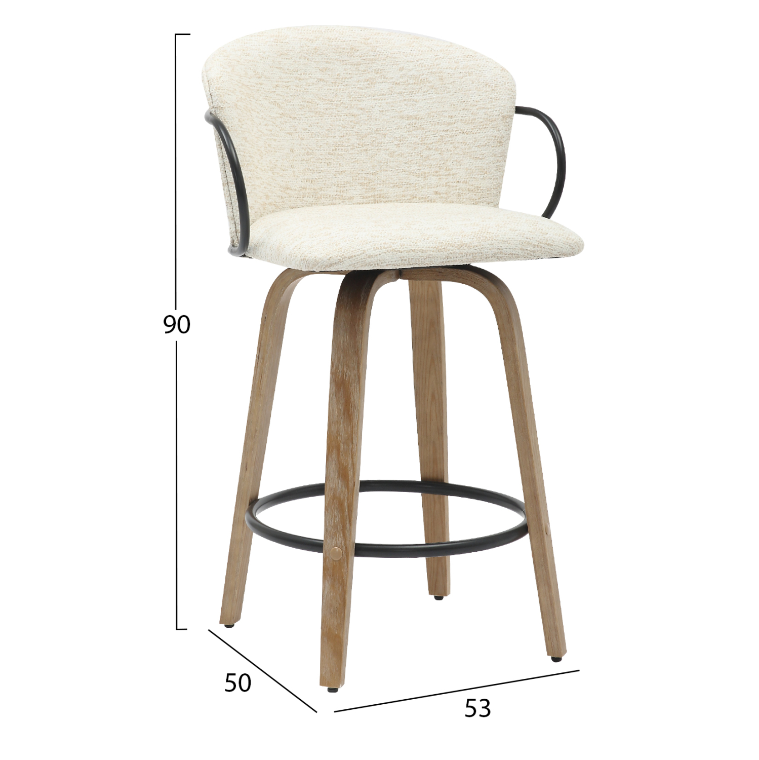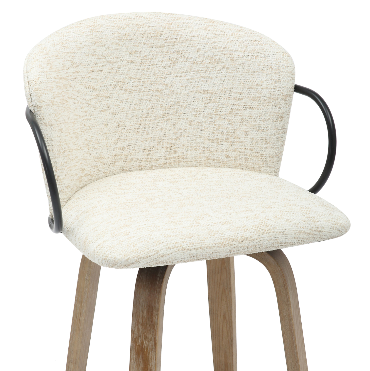 Το NEBOR είναι ένα σκαμπό μεσαίου ύψους με πλάτη και μπράτσα για μπαρ. Τα πόδια είναι κατασκευασμένα από ξύλο (κοντρα-πλακέ θαλάσσης) σε WHITEWASH απόχρωση ενώ το στρογγυλό υποπόδιο είναι μεταλλικό σε ΜΑΥΡΟ χρώμα. Το κάθισμα και η πλάτη είναι επενδυμένα με ΕΚΡΟΥ ύφασμα ενώ τα μπράτσα με το ιδιαίτερο σχήμα είναι μεταλλικά.