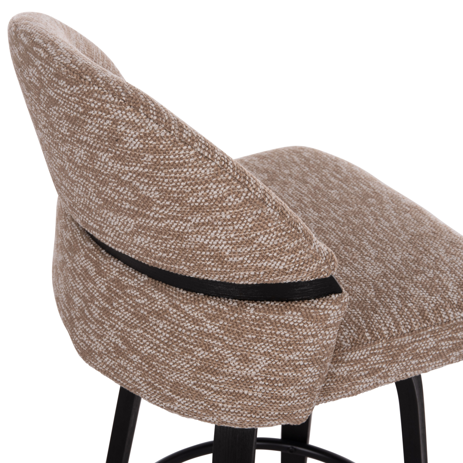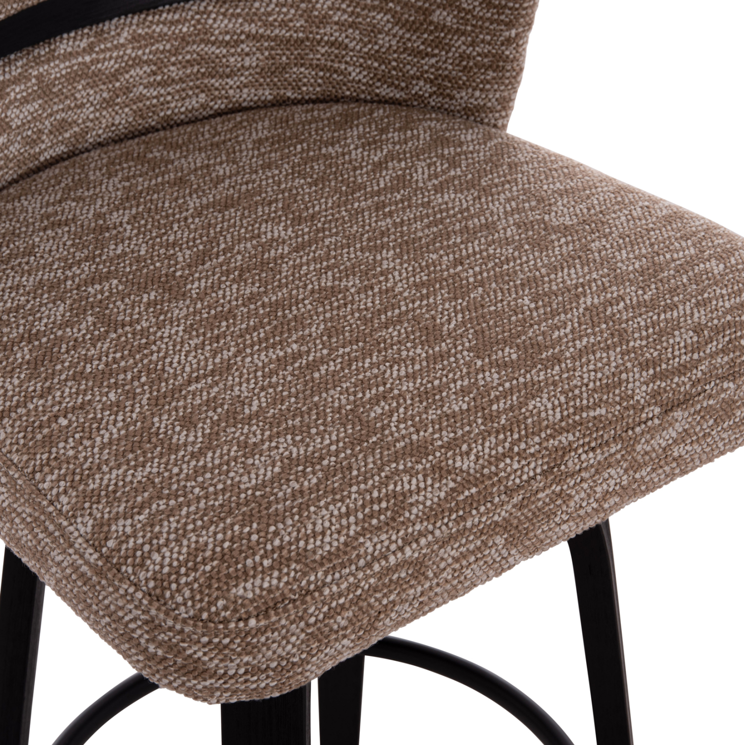 Το περιστρεφόμενο σκαμπό μπαρ μεσαίου ύψους DEKKER αποτελεί μια νέα πρόταση για τον επαγγελματικό σας χώρο. Ο σκελετός είναι από plywood σε ΜΑΥΡΟ χρώμα, ενώ το κάθισμα και η πλάτη είναι επενδυμένα με υπέροχο ανάγλυφο ύφασμα σε ΚΑΦΕ χρώμα. Στο κάτω μέρος των ποδιών υπάρχουν ρεγουλατόροι για ρύθμιση της σταθερότητας του σκαμπό, ενώ διαθέτει και υποπόδιο.