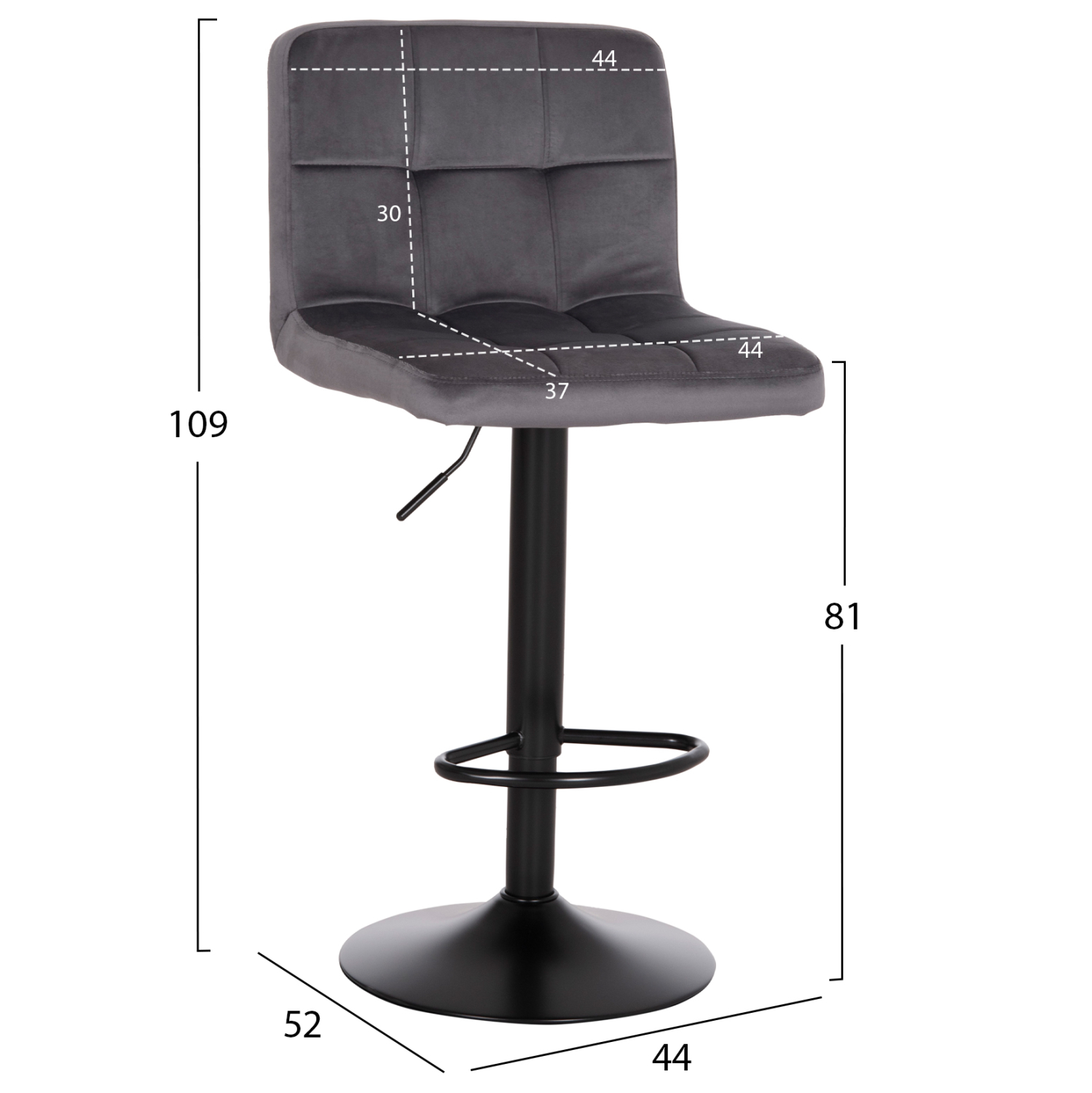 Το DIANA είναι ένα ΠΕΡΙΣΤΡΕΦΟΜΕΝΟ σκαμπό για μπαρ με ΓΚΡΙ βελούδινη επένδυση, που έχει όλα όσα θα θέλατε από ένα τέτοιο έπιπλο, μιας και είναι λιτό, πραγματικά ποιοτικό και κομψό στην όψη. Διαθέτει πλάτη και στηρίζεται σε μια μεταλλική κολώνα σε ΜΑΥΡΟ ΜΑΤ χρώμα με καλαίσθητο υποπόδιο. Το εξτρά χαρακτηριστικό που κάνει αυτό το σκαμπό να ξεχωρίζει είναι ότι διαθέτει και ρύθμιση ύψους καθίσματος (αμορτισέρ) μέσω ενός μοχλού που βρίσκεται κάτω από το κάθισμα. Μια πραγματικά πολυτελής πρόταση που θα αναβαθμίσει κάθε επαγγελματικό χώρο.