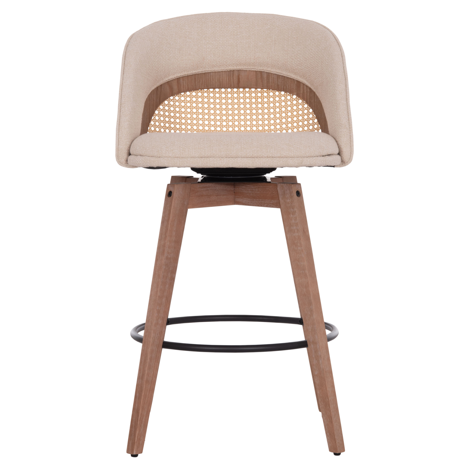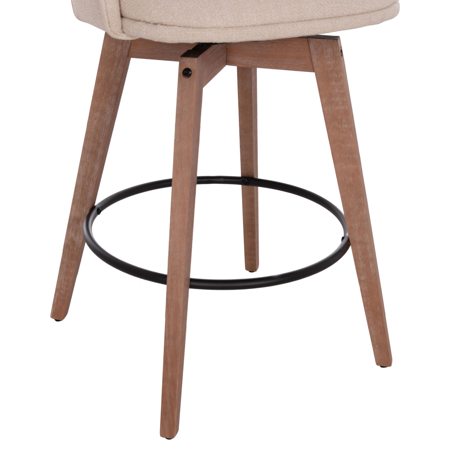 Το περιστρεφόμενο σκαμπό μπαρ μεσαίου ύψους RIKI αποτελεί ακόμα μια εξαιρετική πρόταση, κυρίως για επαγγελματικούς χώρους. Τα πόδια είναι ξύλινα σε χρώμα WHITEWASH, ενώ η πλάτη και το κάθισμα έχουν επένδυση με ποιοτικό ύφασμα σε ΜΠΕΖ χρώμα. Η λεπτομέρεια με την μπεζ «σίτα» που υπάρχει στην πλάτη βοηθάει στο να μένει «δροσερό» κατά την χρήση. Στο κάτω μέρος των ποδιών υπάρχουν ρεγουλατόροι για ρύθμιση της σταθερότητας του σκαμπό, ενώ διαθέτει και υποπόδιο που ενώνει τα 4 πόδια κυκλικά.