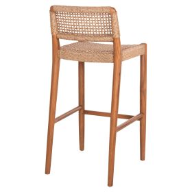 Το σκαμπό μπαρ ROSCO με το ψηλό κάθισμα διαθέτει σκελετό από ποιοτικό ξύλο σε ΚΑΡΥΔΙ χρώμα, ενώ τόσο η κοντή πλάτη όσο και το φαρδύ κάθισμα αποτελούνται από αριστοτεχνικά πλεγμένο VIRO σχοινί σε ΚΑΦΕ χρώμα. Οι σχεδιαστικές γραμμές είναι κομψές και με γνώμονα την άνεση του χρήστη, με χαρακτηριστικό παράδειγμα την ύπαρξη των συνδέσεων των ποδιών του σκαμπό, που χρησιμεύουν και ως υποπόδια.