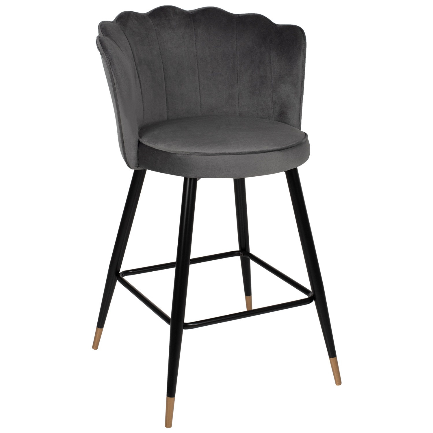 Επαγγελματικό σκαμπό bar «VESNA» σε ΓΚΡΙ χρώμα με μαύρο μεταλλικό σκελετό. Τα μεταλλικά πόδια ενώνονται μεταξύ τους περίπου στη μέση τους με μια μαύρη μεταλλική ράγα. Το «VESNA» είναι λιτό, ποιοτικό και κομψό στην όψη, και σίγουρα τραβάει τα βλέμματα με το βελούδινο ύφασμα με το οποίο είναι επενδυμένο. Είναι μεσαίου ύψους με πλάτη, η οποία έχει την όψη ανοιχτού όστρακου δίνοντας μια ιδιαίτερη αισθητική στον χώρο.