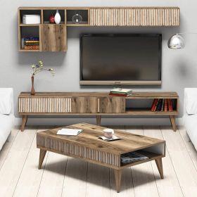 Η σύνθεση ΗΜ11847.01 θα αλλάξει την όψη στο σαλόνι σας και θα σας προσφέρει την αναβάθμιση που θέλετε. Αποτελείται από έναν συνδυασμό επίπλων για την τηλεόρασή σας με μονάδα δαπέδου και επιτοίχια ράφια, και ένα τραπεζάκι σαλονιού. Όλη η σύνθεση είναι της ίδιας σειράς και τα κυρίαρχα χρώματα είναι το ΚΑΡΥΔΙ και το ΛΕΥΚΟ.