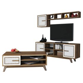 Η σύνθεση ΗΜ11852.03 θα αλλάξει την όψη στο σαλόνι σας και θα σας προσφέρει την αναβάθμιση που θέλετε. Αποτελείται από έναν συνδυασμό επίπλων για την τηλεόρασή σας με μονάδα δαπέδου, επιτοίχιο ράφι και επιτοίχιο ντουλάπι, και ένα τραπεζάκι σαλονιού. Όλη η σύνθεση είναι της ίδιας σειράς και τα κυρίαρχα χρώματα είναι το ΚΑΡΥΔΙ και το ΛΕΥΚΟ.