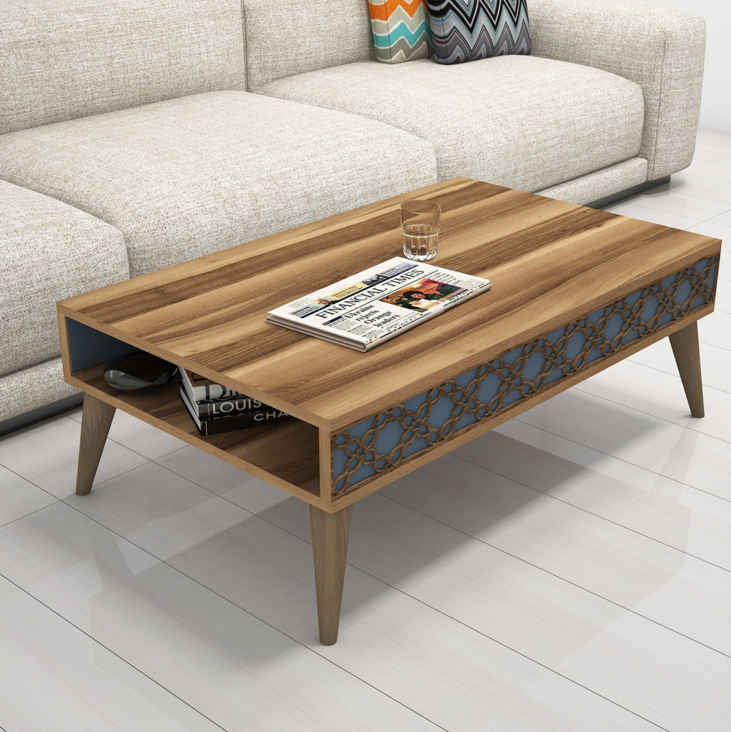 Η σύνθεση ΗΜ11850.04 θα αλλάξει την όψη στο σαλόνι σας και θα σας προσφέρει την αναβάθμιση που θέλετε. Αποτελείται από έναν συνδυασμό επίπλων για την τηλεόρασή σας με μονάδα δαπέδου, επιτοίχιο ράφι και επιτοίχιο ντουλάπι, και ένα τραπεζάκι σαλονιού. Όλη η σύνθεση είναι της ίδιας σειράς με συνδυασμό χρωμάτων ΚΑΡΥΔΙ με ΜΠΛΕ.