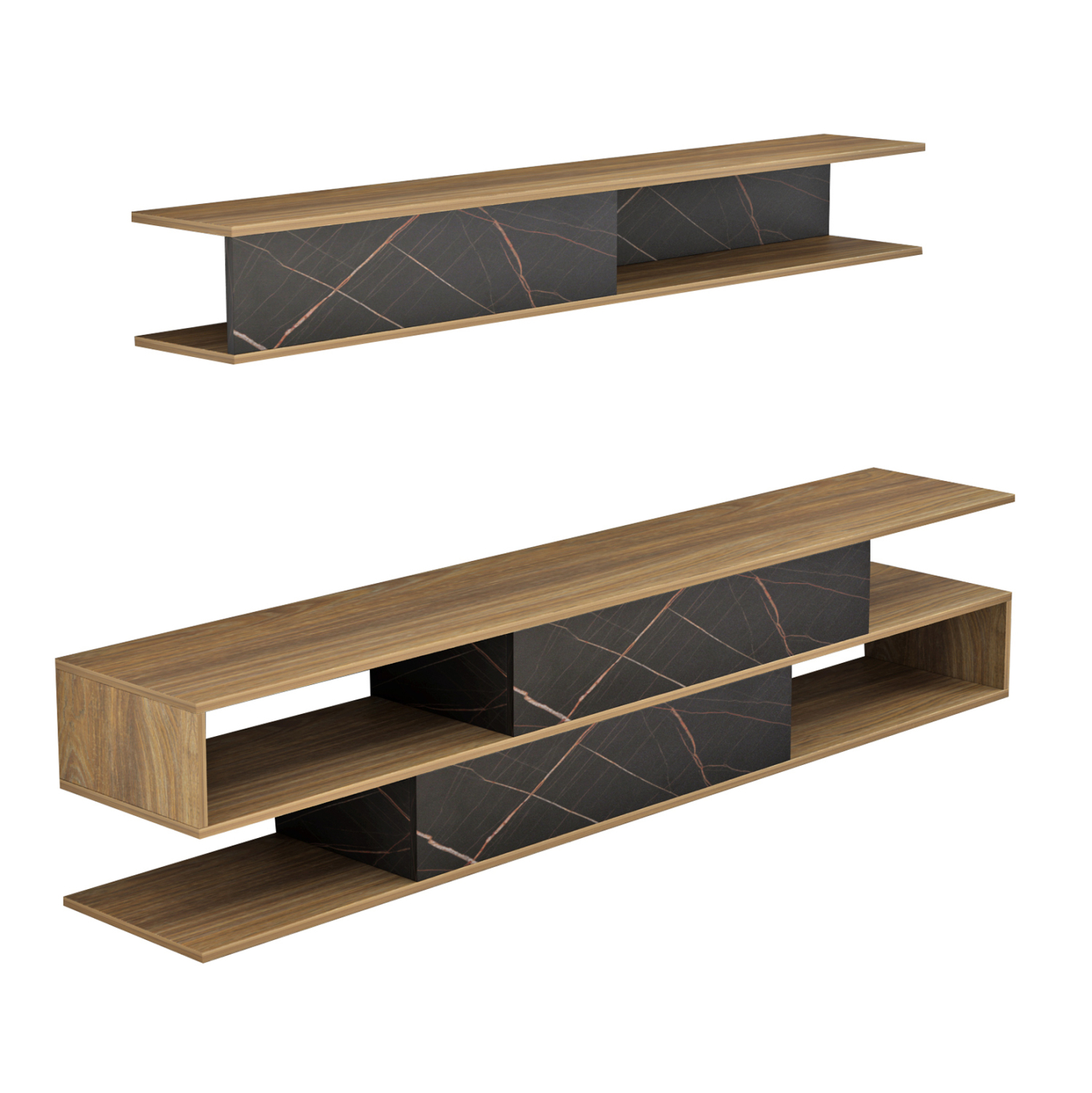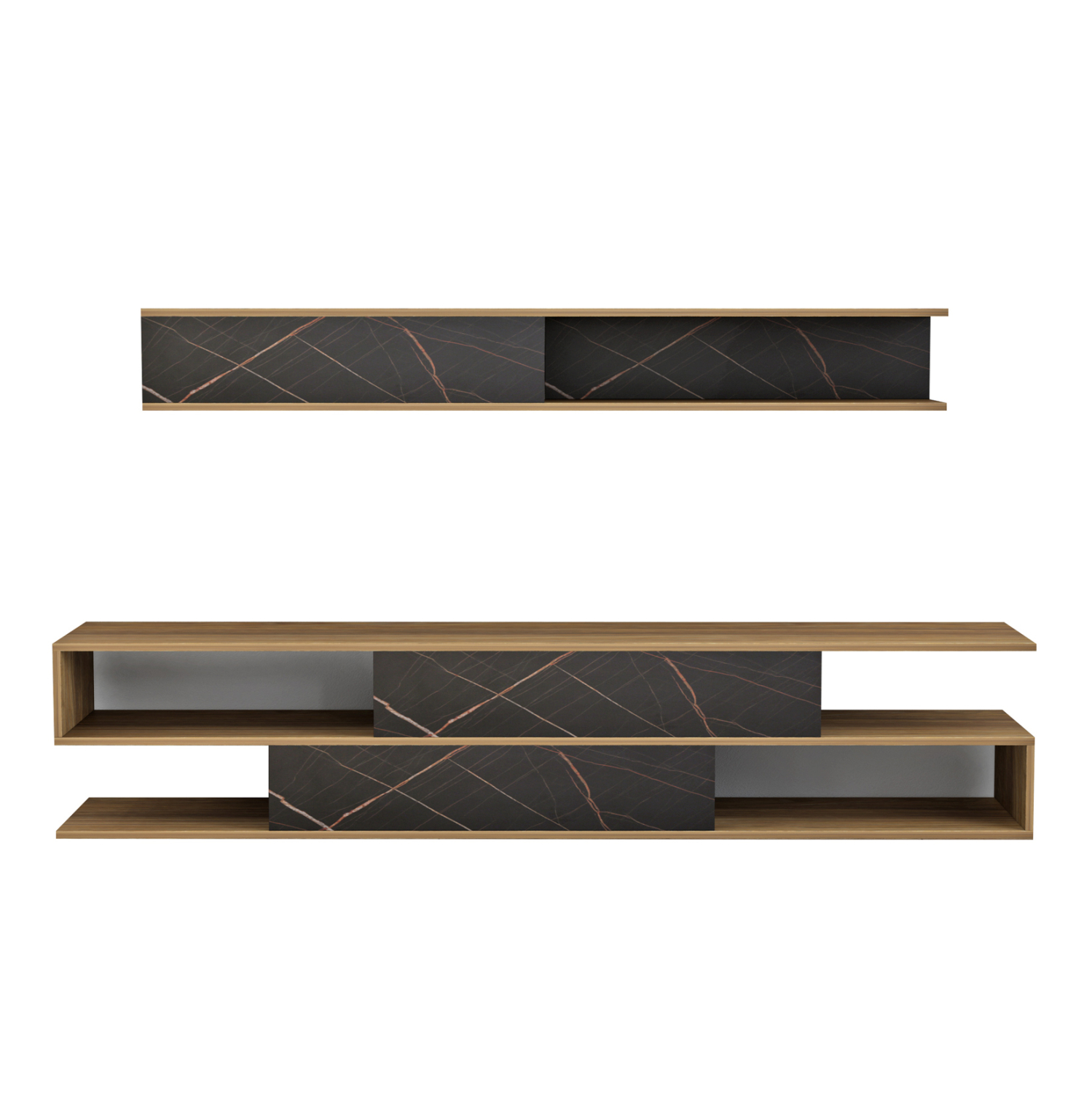 Το BIRGITTA είναι μια μοντέρνα και λειτουργική σύνθεση τηλεόρασης, που θα ομορφύνει το σαλόνι σας! Αποτελείται από 2 μέρη. Το έπιπλο δαπέδου που εκτός από τους ανοιχτούς χώρους σε μοντέρνα υλοποίηση, διαθέτει και 2 ντουλάπια με πόρτες που ανοίγουν προς τα κάτω, και ένα επιτοίχιο ράφι παρόμοιας αισθητικής. Η σύνθεση έρχεται σε όμορφη διχρωμία ΜΑΥΡΟΥ ΜΑΡΜΑΡΟΥ-ΦΥΣΙΚΟΥ και θα απογειώσει την εικόνα του σαλονιού σας.