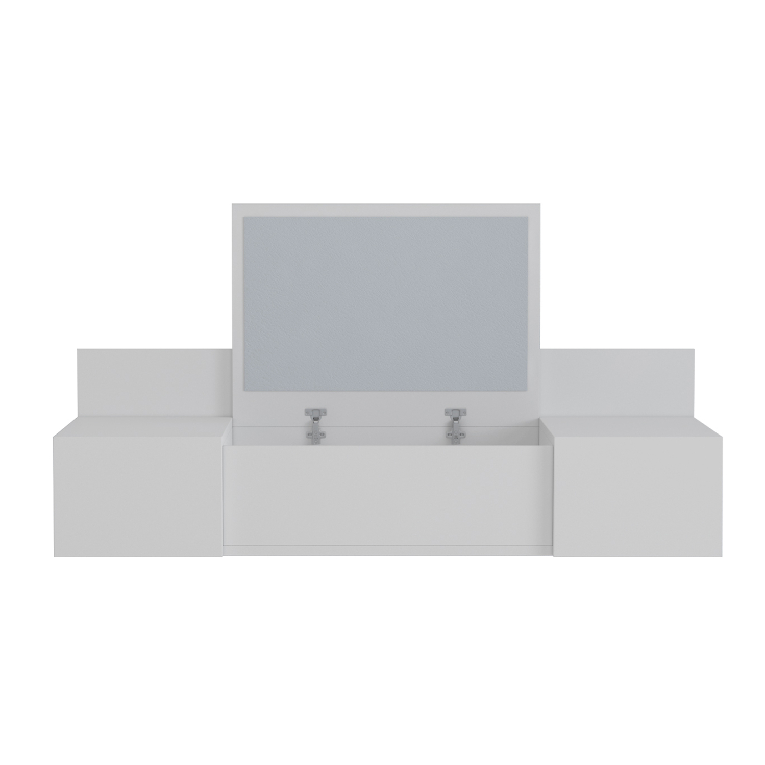 Η κρεμαστή τουαλέτα LINDE σε ΛΕΥΚΟ χρώμα είναι μια πρακτική και προσιτή πρόταση για το υπνοδωμάτιο. Αναρτάται στον τοίχο και διαθέτει πτυσσόμενο καθρέπτη και 2 συρτάρια στις δύο πλευρές. Όταν ο καθρέπτης είναι κλειστός το έπιπλο μετατρέπεται σε πάγκο. Κάτω από τον καθρέπτη υπάρχει ακόμα ένας χώρος αποθήκευσης αντικειμένων. Ένα έπιπλο που θα ομορφύνει τον χώρο και ταυτόχρονα θα σας βοηθήσει να οργανώσετε με τον καλύτερο τρόπο τα αγαπημένα σας αντικείμενα.