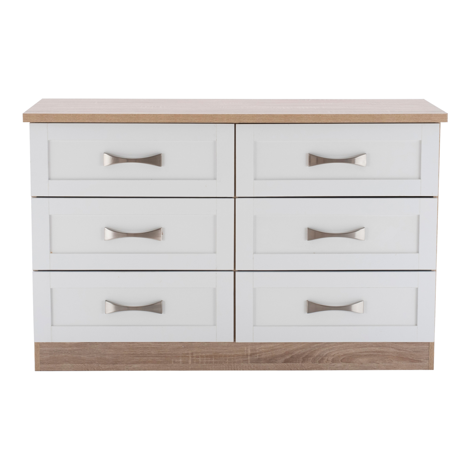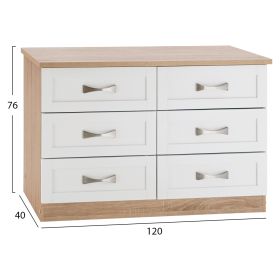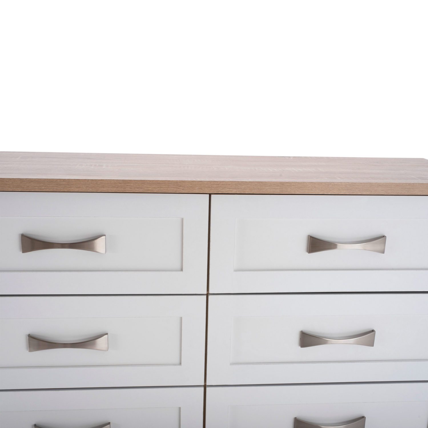 Διαθέτει έξι ευρύχωρα συρτάρια για να τοποθετήσετε τα προσωπικά σας αντικείμενα. Τα χερούλια είναι μεταλλικά σε ασημί απόχρωση.