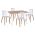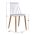 Τέσσερις καρέκλες με κάθισμα από πολυπροπυλένιο σε λευκή απόχρωση και μεταλλικά πόδια με απόδοση στο φυσικό χρώμα του ξύλου.