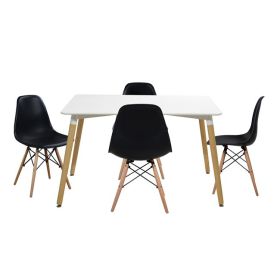 Τέσσερις Καρέκλες απο πολυπροπυλένιο σε mat υφή και μαύρο χρώμα.Τα πόδια της καρέκλας είναι απο μασίφ ξύλο. Η καρέκλα διατείθεται σε πακέτο.
