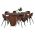 Αυτό το σετ τραπεζαρίας εσωτερικού χώρου αποτελείται από ένα τραπέζι DENTY και 6 καρέκλες VELP. Το DENTY είναι ένα μεγάλο οβάλ τραπέζι για την τραπεζαρία, με φαλτσοκομμένη επιφάνεια από MDF με καπλαμά δρυός σε ΚΑΡΥΔΙ χρώμα. Η επιφάνεια αυτή στηρίζεται σε 2 πανέμορφες ξύλινες κυλινδρικές βάσεις με ίδιο χρωματισμό. Οι καρέκλες VELP έχουν κάθισμα σε ΜΑΥΡΗ απόχρωση και ΜΑΥΡΑ μεταλλικά πόδια. Αυτό, όμως, που ξεχωρίζει είναι ότι ολόκληρη η πλάτη είναι ξύλινη σε ΚΑΡΥΔΙ χρώμα κι είναι κυρτή και αναπαυτική.