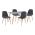 Τέσσερις μοντέρνες καρέκλες επενδυμένες με ύφασμα σε γκρι απόχρωση. Τα πόδια είναι μεταλλικά για μεγαλύτερη αντοχή, βαμμένα στο χρώμα του ξύλου, δίνοντας τους την όψη του φυσικού.