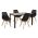 Τέσσερις καρέκλες με ξύλινα πόδια, κάθισμα πολυπροπυλενίου και μαξιλαράκι από τεχνόδερμα σε μαύρη απόχρωση. Τα πόδια της καρέκλας είναι από μασίφ ξύλο.