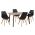 Τέσσερις καρέκλες με ξύλινα πόδια, κάθισμα πολυπροπυλενίου και μαξιλαράκι από τεχνόδερμα σε μαύρη απόχρωση. Τα πόδια της καρέκλας είναι από μασίφ ξύλο.