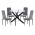 Ένα στρογγυλό τραπέζι με εκπληκτικό design με μεταλλικά πόδια σε ΜΑΥΡΟ χρώμα και γυάλινη επιφάνεια, και 4 καρέκλες με ΜΑΥΡΑ μεταλλικά πόδια και επένδυση από βελούδο σε ΓΚΡΙ χρώμα.
