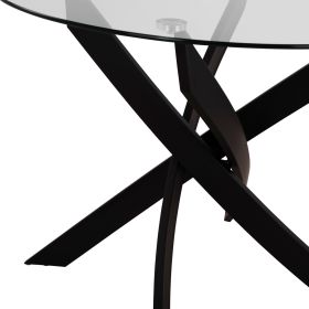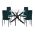 Ένα στρογγυλό τραπέζι με εκπληκτικό design με μεταλλικά πόδια σε ΜΑΥΡΟ χρώμα και γυάλινη επιφάνεια, και 4 καρέκλες με ΜΑΥΡΑ μεταλλικά πόδια και επένδυση από βελούδο σε όμορφο ΚΥΠΑΡΙΣΣΙ χρώμα.