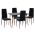 Ένα ορθογώνιο τραπέζι με πόδια από ξύλο οξιάς σε ΦΥΣΙΚΟ χρώμα και επιφάνεια από MDF σε ΜΑΥΡΟ χρώμα, και 4 καρέκλες με επένδυση από βελούδο σε ΜΑΥΡΟ χρώμα και μεταλλικά πόδια επίσης σε ΜΑΥΡΟ χρώμα.
