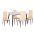 Ένα ορθογώνιο τραπέζι με σκελετό μεταλλικό σε ΜΑΥΡΟ χρώμα και κεραμική επιφάνεια με όψη ΛΕΥΚΟΥ ΜΑΡΜΑΡΟΥ, και 4 καρέκλες με ψηλή πλάτη και κάθισμα με επένδυση από συνθετικό δέρμα PU σε ΚΡΕΜ χρώμα και μεταλλικό σκελετό σε ΜΑΥΡΟ χρώμα.