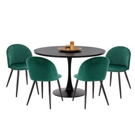Το σετ τραπεζαρίας εσωτερικού χώρου ROLLO αποτελείται από ένα τραπέζι και 4 καρέκλες. Το τραπέζι είναι στρογγυλό (ροτόντα), με επιφάνεια από μελαμίνη και μεταλλική κολώνα, όλο σε ΜΑΥΡΟ χρώμα. Οι καρέκλες έχουν επένδυση από βελούδο σε ΚΥΠΑΡΙΣΣΙ απόχρωση και ΜΑΥΡΑ μεταλλικά πόδια.