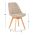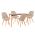 Ένα ορθογώνιο τραπέζι με σκελετό από ξύλο οξιάς σε ΦΥΣΙΚΟ χρώμα και επιφάνεια από MDF σε ΦΥΣΙΚΟ χρώμα ξύλου, και 4 καρέκλες με επένδυση από εξαιρετικό ύφασμα σε ΜΠΕΖ χρώμα με πόδια οξιάς σε φυσικό χρώμα ΞΥΛΟΥ.