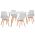 Ένα ορθογώνιο τραπέζι με σκελετό από ξύλο οξιάς σε ΦΥΣΙΚΟ χρώμα και επιφάνεια από MDF σε ΛΕΥΚΟ χρώμα, και 4 καρέκλες με πλάτη πολυπροπυλενίου και κάθισμα με επένδυση PU σε ΛΕΥΚΟ χρώμα με πόδια οξιάς σε φυσικό χρώμα ΞΥΛΟΥ.