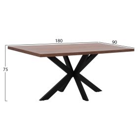 HΜ11912---Σετ τραπεζαρίας με τραπέζι, 4 καρέκλες και 2 πολυθρόνες. Το επιβλητικό ορθογώνιο τραπέζι, που αποτελεί μια από τις καινούργιες προσθήκες στην γκάμα μας, διαθέτει επιφάνεια από MDF με καπλαμά καρυδιάς σε χρώμα ΚΑΡΥΔΙ σε στυλ ρουστίκ. Η επιφάνεια αυτή στηρίζεται σε μια μαύρη διάταξη με μεταλλικά διπλοχιαστί πόδια. Οι καρέκλες και οι πολυθρόνες με αναπαυτικό σχεδιασμό και ζεστό ύφασμα TEDDY, είναι σε ΦΥΣΤΙΚΙ απόχρωση, ενώ τα πόδια τους είναι μαύρα. Το αποτέλεσμα είναι ένας αχτύπητος συνδυασμός για την τραπεζαρία σας.