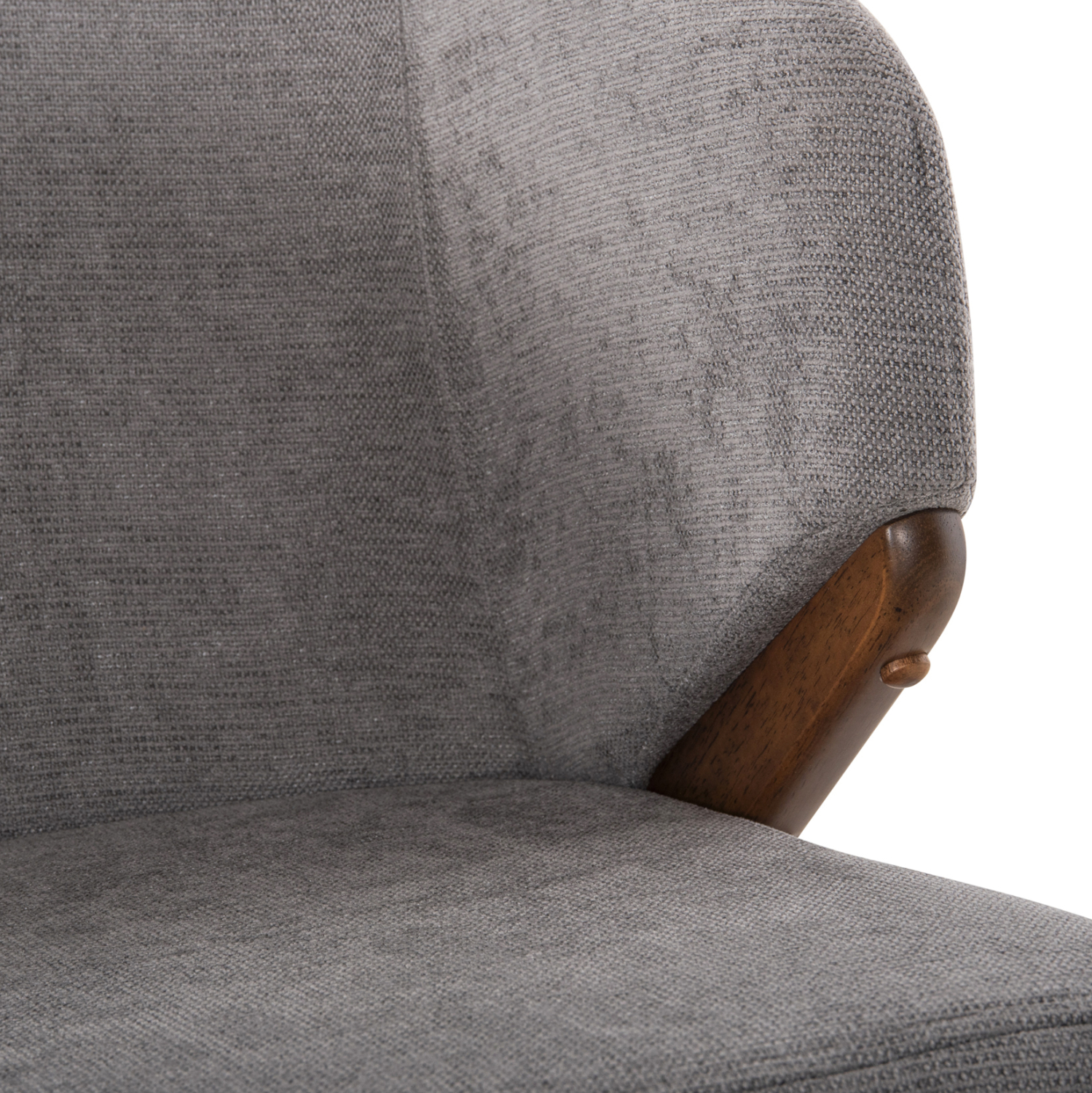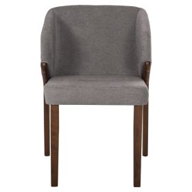 Ένα ορθογώνιο τραπέζι με στρογγυλεμένες γωνίες με ιδιαίτερο χαρακτηριστικό ότι η απόχρωση της φαλτσοκομμένης επιφάνειας αλλά και των ποδιών/βάσεων είναι ΣΚΟΥΡΑ ΚΑΡΥΔΙ σε sunburst τεχνοτροπία του καπλαμά, και 6 καρέκλες από ποιοτικό μασίφ rubberwood (καουτσουκόδεντρο) σε ΚΑΡΥΔΙ χρώμα με αναπαυτικές τετραγωνισμένες πλάτες που αγκαλιάζουν το σώμα με επένδυση από ποιοτικό ΓΚΡΙ ύφασμα.