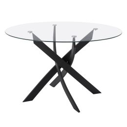 ΤΡΑΠΕΖΙ ΤΡΑΠΕΖΑΡΙΑΣ ΣΤΡΟΓΓΥΛΟ JADA ΜΕΤΑΛΛΙΚΟ ΜΑΥΡΟ ΜΕ ΓΥΑΛΙ HM8733.01 Φ120X75Y εκ.