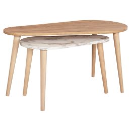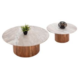 ΤΡΑΠΕΖΙA ΣΑΛΟΝΙΟΥ 2ΤΜΧ FORMEL HM11915 ΑΚΑΚΙΑ ΣΕ ΦΥΣΙΚΟ-ΛΕΥΚΟ ΜΑΡΜΑΡΟ Φ100 & Φ80 εκ.