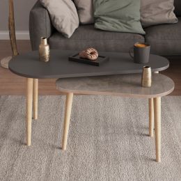 ΤΡΑΠΕΖΙΑ ΣΑΛΟΝΙΟΥ RINKON HM18263.03 ΚΕΡΑΜΙΚΑ TOP ΟΨΗ ΓΚΡΙ ΜΑΡΜΑΡΟΥ Φ50εκ & Φ70εκ