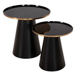 ΤΡΑΠΕΖΙA ΣΑΛΟΝΙΟΥ 2ΤΜΧ REBEN HM9919 ΜΕΤΑΛΛΟ ΧΡΥΣΟ-ΦΙΜΕ ΜΑΥΡΟ ΓΥΑΛΙ Φ80 & Φ60 εκ.