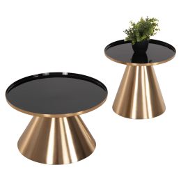 ΤΡΑΠΕΖΙA ΣΑΛΟΝΙΟΥ 2ΤΜΧ LORME HM9923 ΜΕΤΑΛΛΟ ΣΕ ΜΑΥΡΟ&ΧΡΥΣΟ Φ50 & Φ40 εκ.